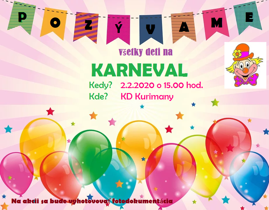 Karneval sa uskutoční dňa 02.02.2020 od 15:00hod v kultúrnom dome.