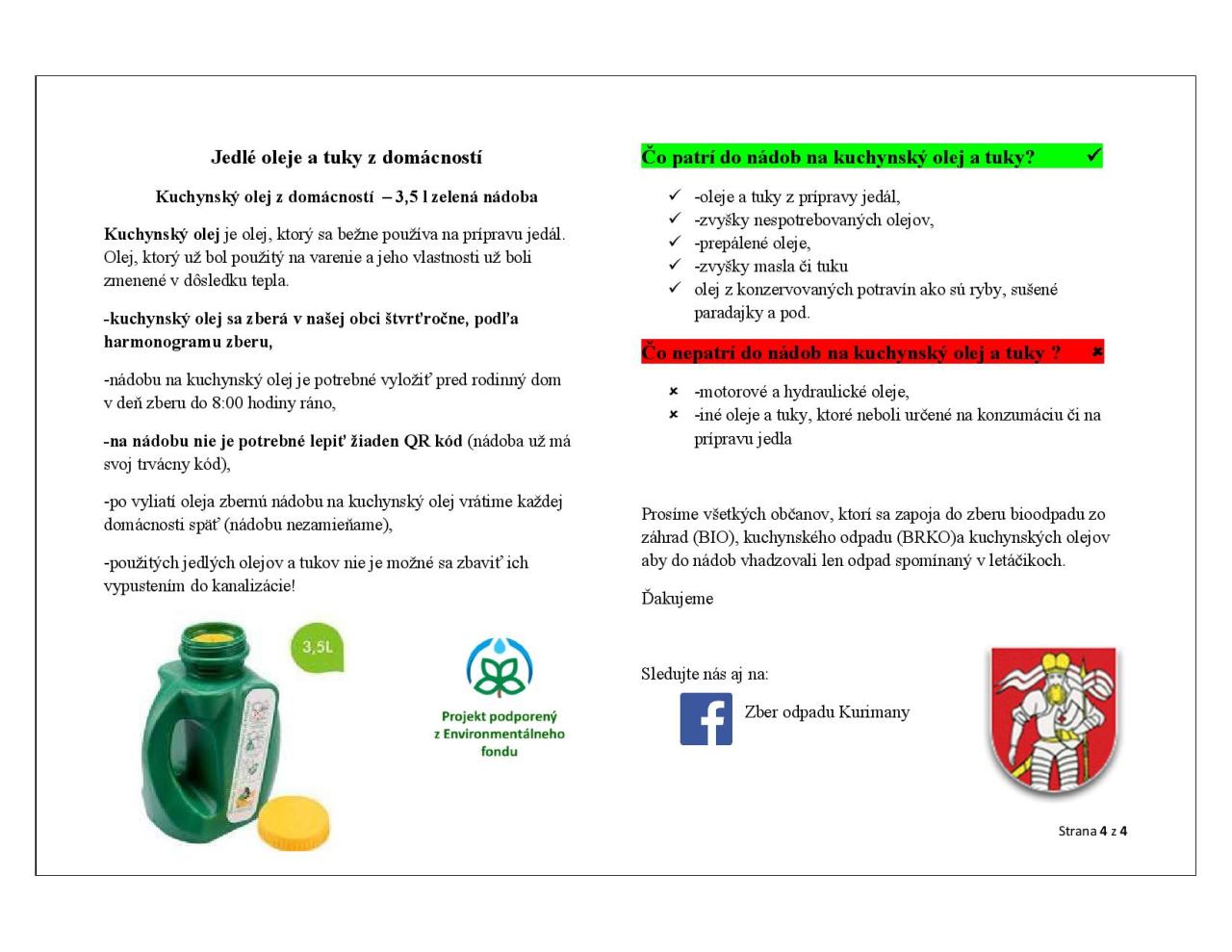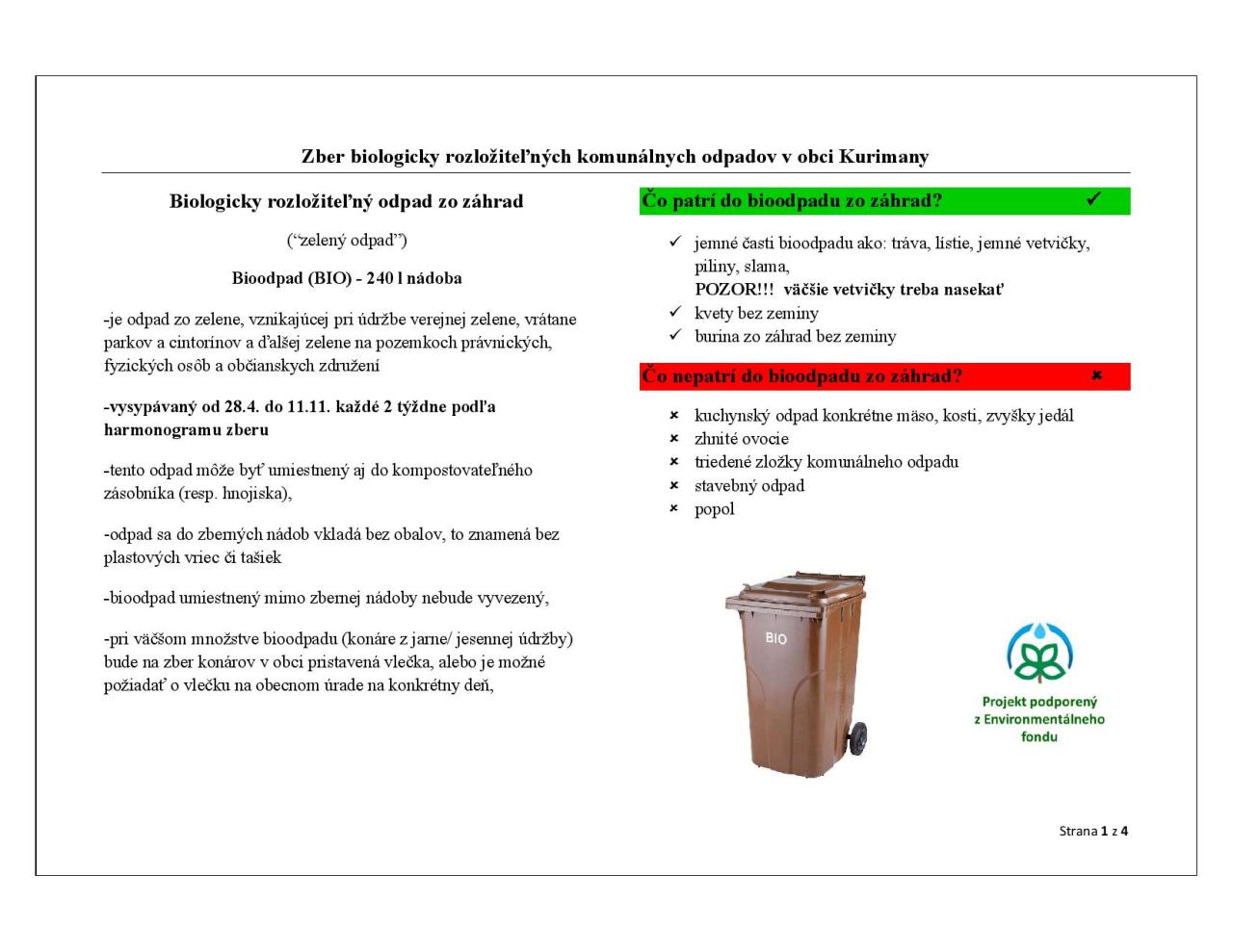 Leták - Zber bioodpadu (BIO) a kuchynského odpadu (BRKO) v obci Kurimanoch