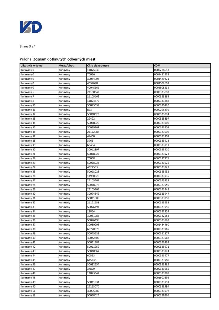 území Vášho mesta resp. obce a dotkne sa odberných miest uvedených v prílohe tohto oznámenia v