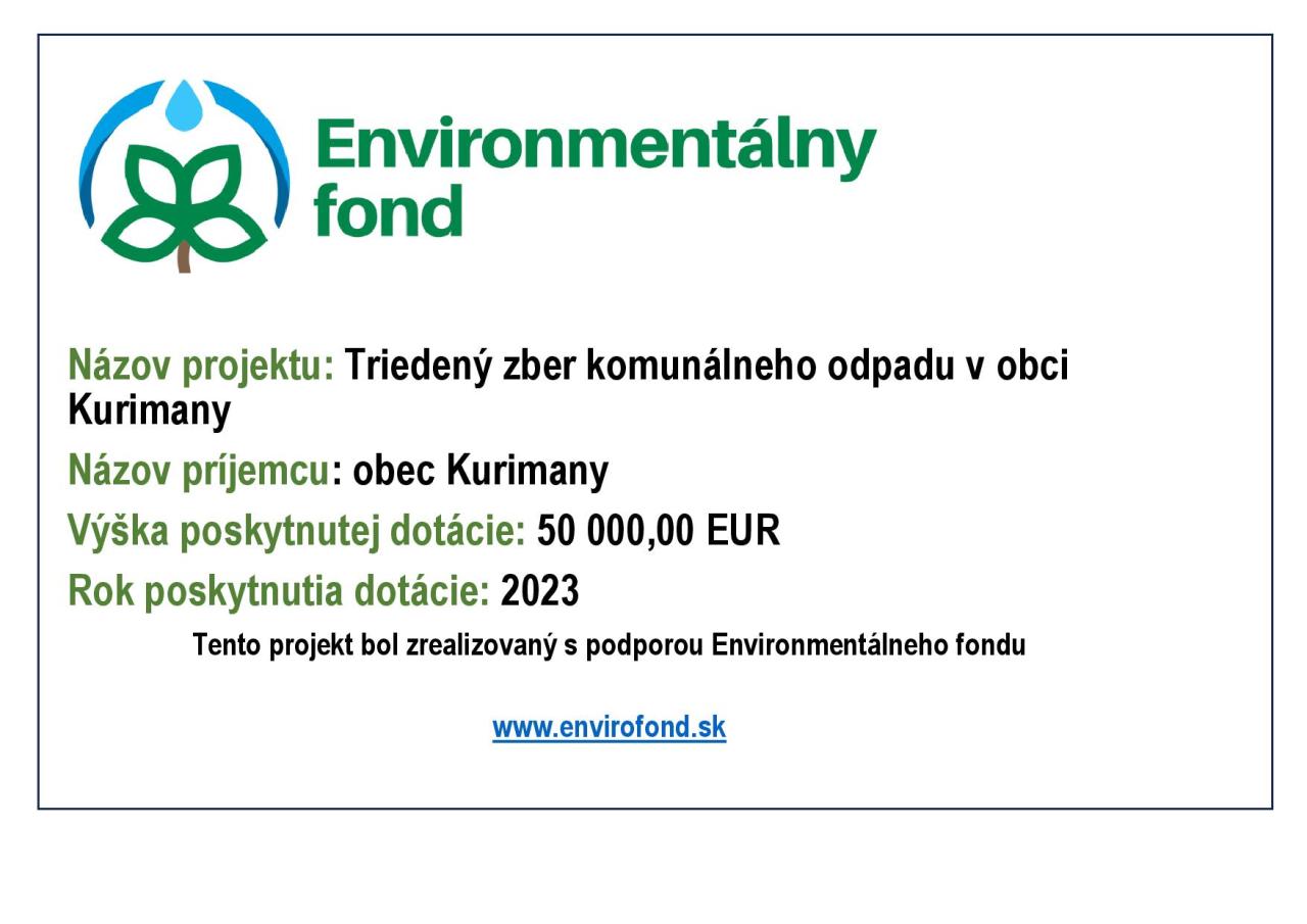 Názov projektu: Triedený zber komunálneho odpadu v obci Kurimany